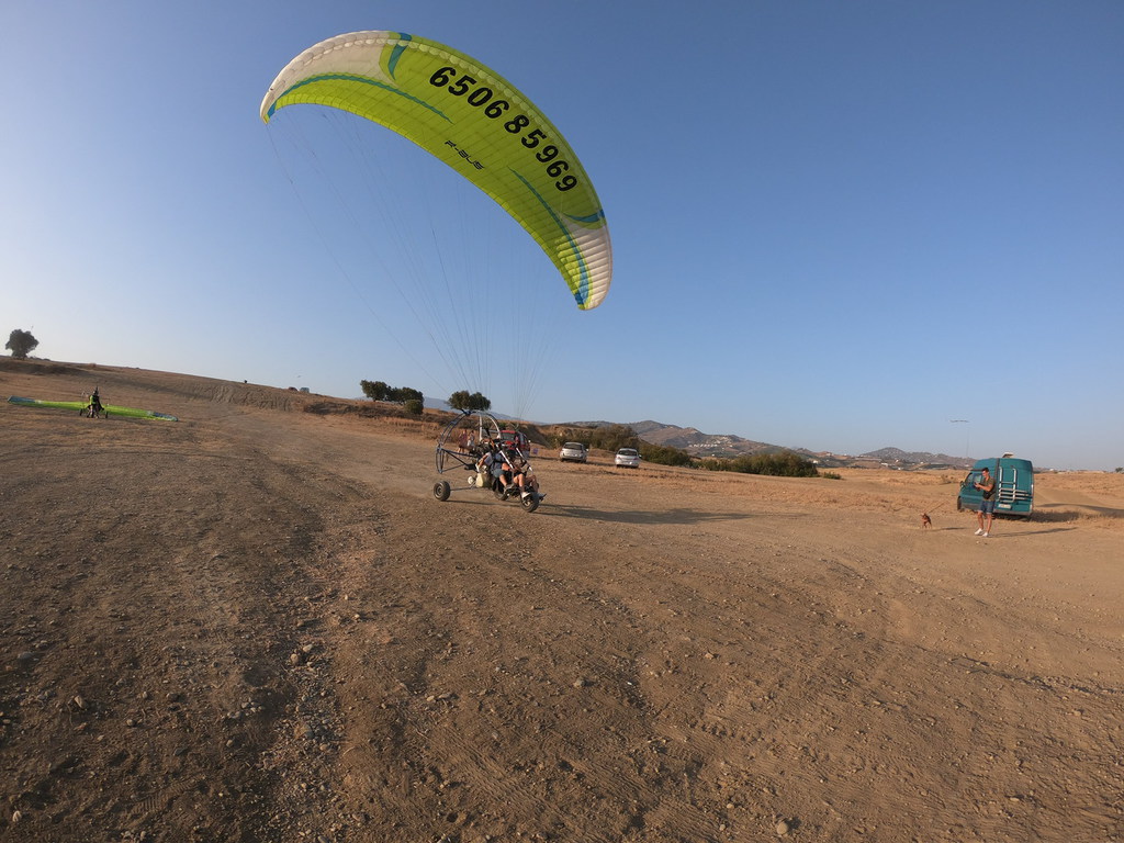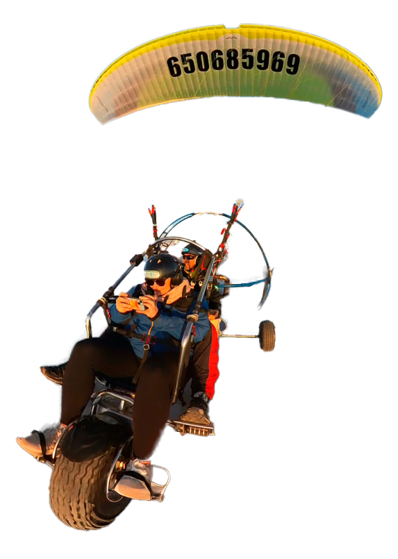 The person will sit in a chair, put their feet on a stirrup and will not have to worry about running or anything, thanks to the propulsion of the engine we will take off from a plain and go around the coast of Malaga Axarquia in Torre del Mar and return to the same place, where family or friends can wait for you and take photos and videos of the take off and landing.
