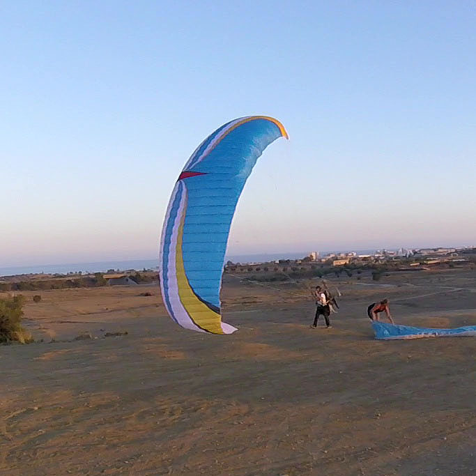 • Prácticas de inflado y control del parapente en tierra.