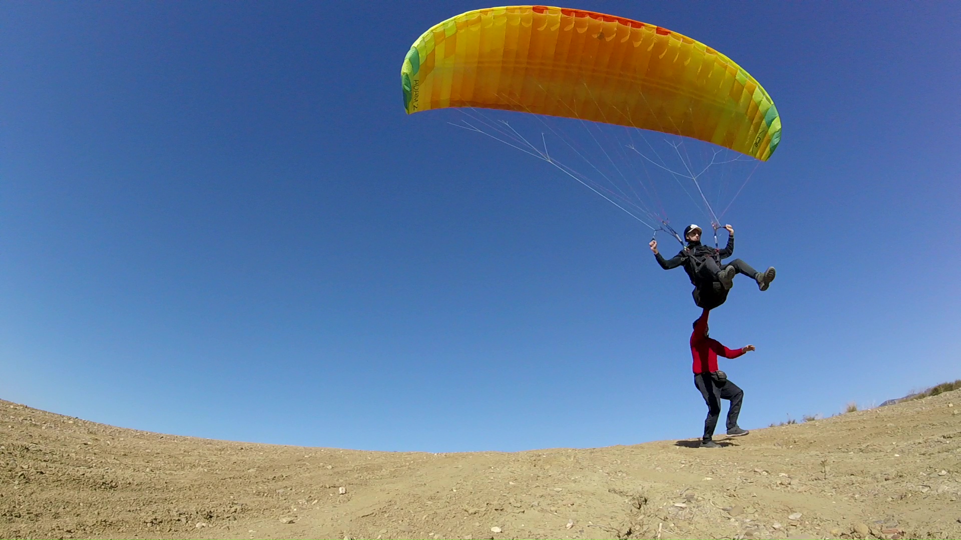 • Prácticas de inflado de espalda y control del parapente en tierra.